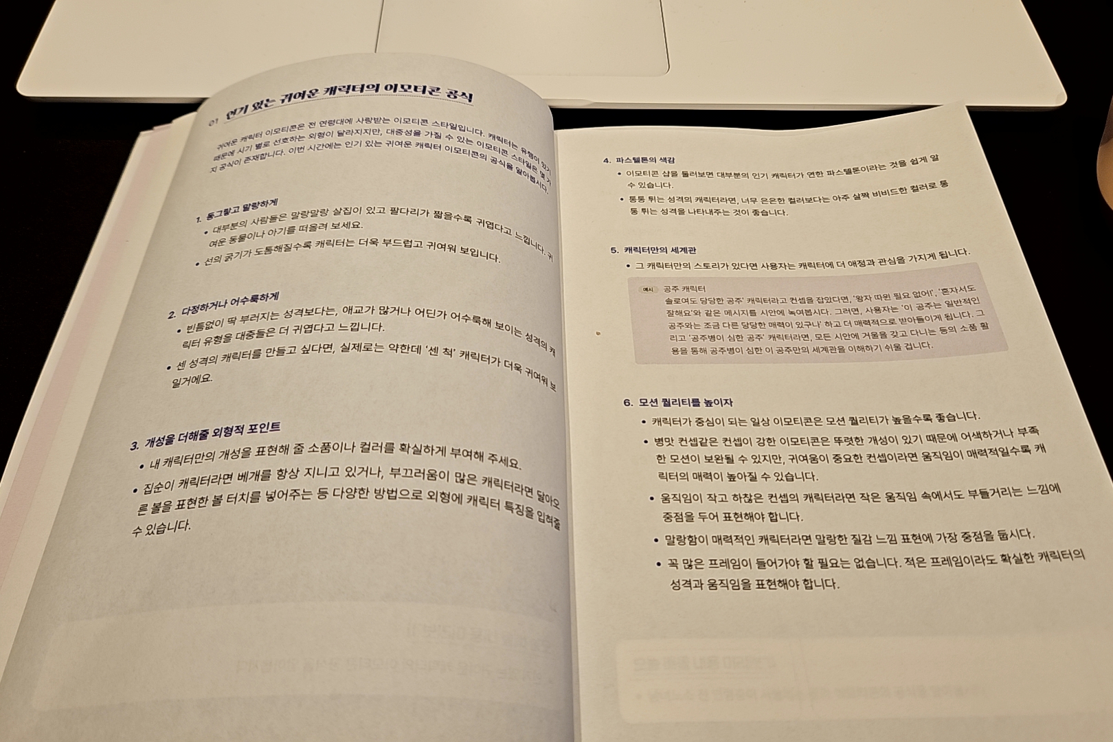 인기있는 귀여운 캐릭터 공식으로는 여러가지가 있어요. 대표적으로는 동그랗고 말랑하게, 다정하거나 어수룩하게, 개성을 더해줄 외형적 포인트, 파스텔톤의 색감, 캐릭터만의 세계관, 모션퀄리티 높이기가 있어요.